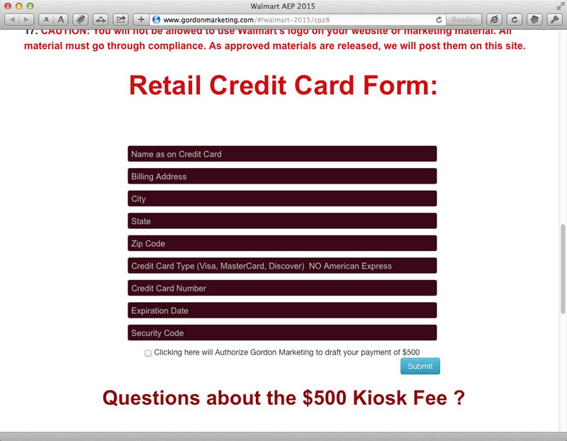 This marketing website is asking for insurance agents to make their $500 kiosk fee by entering credit card data on an insecure website...and it then expects these same agents to enter other people's sensitive information, including social security numbers/etc, into the GoHealthInsurance.com and/or Healthcare.gov/other state exchange websites.