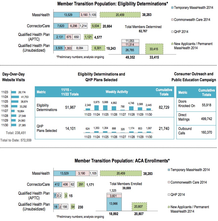 Massachusetts: 21,740 QHPs as of Sunday night; 38,283 added to Medicaid