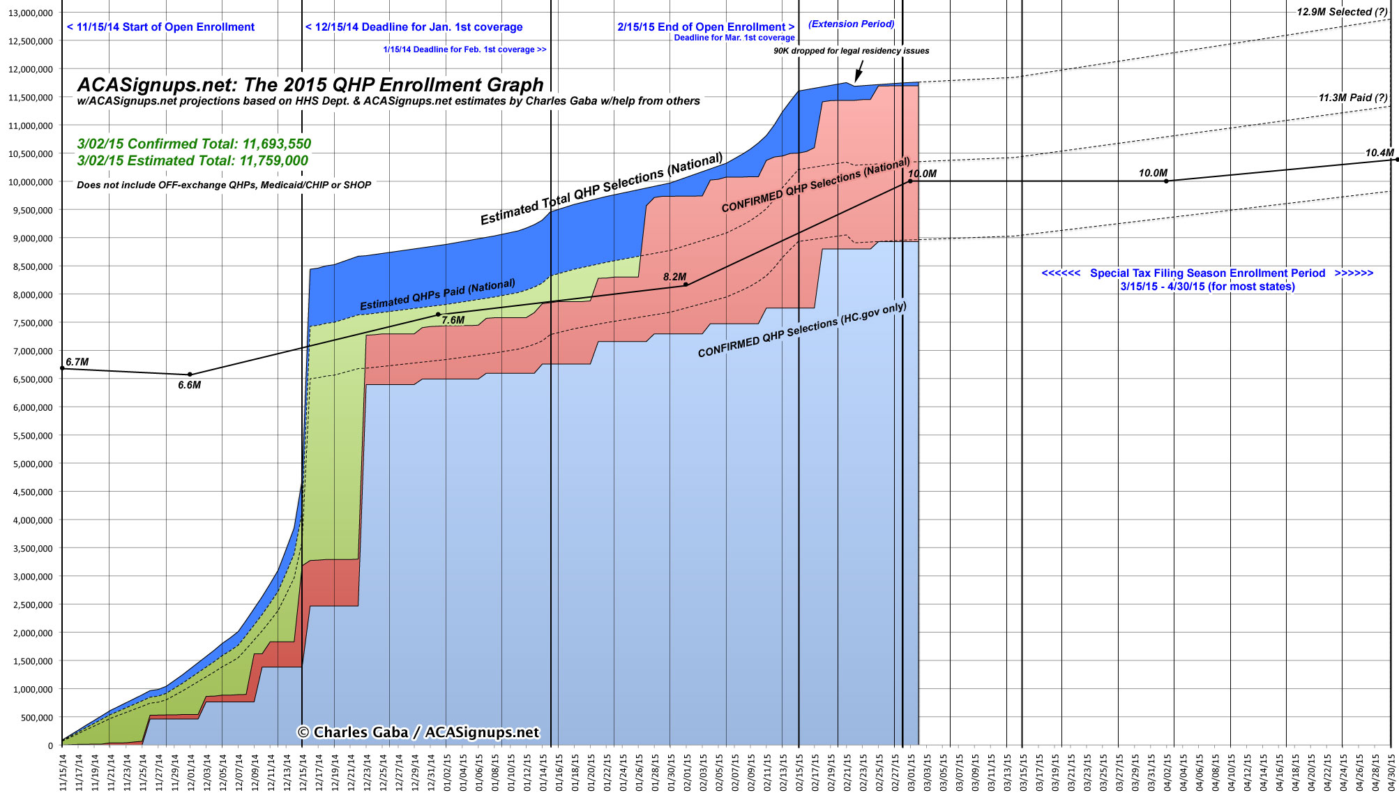 A few weeks back I posted a wildly speculative look at what the rest of 2015 might look like (assuming, that is, that the Supreme Court doesn't blow all of my enrollment models out of the water this June with a horrible King v. Burwell ruling).