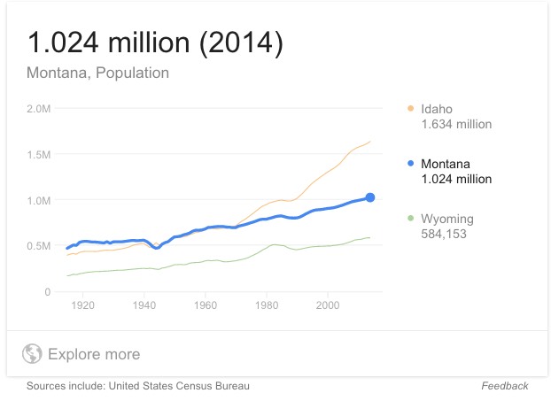 Montana’s estimated population in 2014 was 1.02 million.