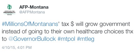 Anyway, now that the new Medicaid expansion measure seems almost certain to finally go through and get signed into law, the AFP has launched a rather laughably pathetic hashtag social media campaign against the bill called "#MillionsOfMontanans":