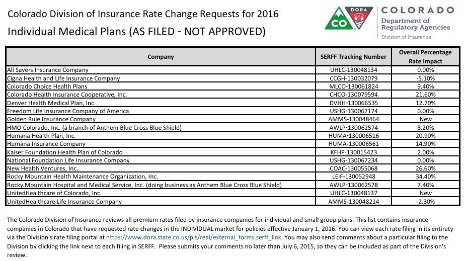 Louise Norris has provided some valuable information about 2016 individual market rate change requests in her home state of Colorado: