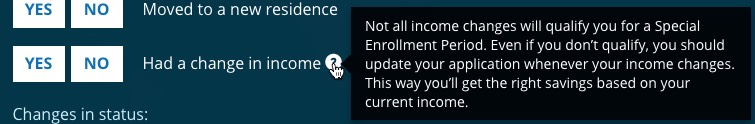 If you enroll directly through a carrier, however, you're pretty much stuck paying full price even if your income changes. Here's the relevant "Qualifying Life Change" from the Special Enrollment Period checklist: