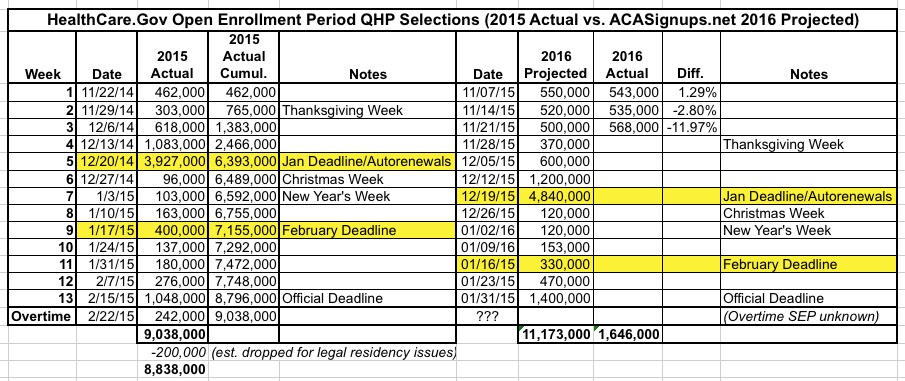 Last year, during the third week of Open Enrollment, 618,548 people selected QHPs via the federal exchange (HealthCare.Gov). This year, I'm pretty sure that right around 500,000 people selected QHPs during the third week.