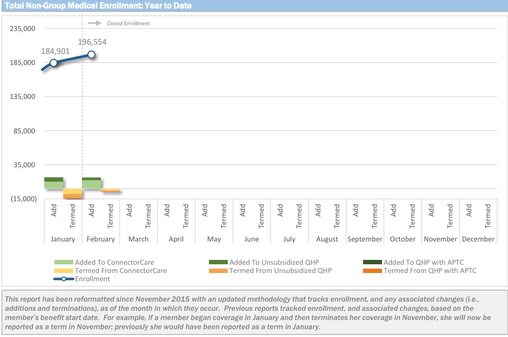 By early February, approximately 201,000 individuals were enrolled in 2016 health coverage.