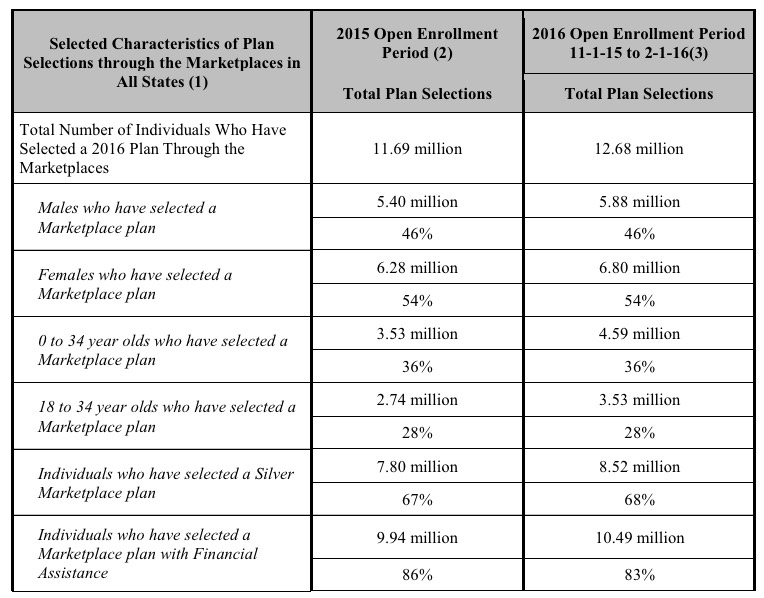 - More than 8.1 million (85 percent of 9.6 million) individuals that selected or were automatically reenrolled into a 2016 plan through the Marketplaces in the HealthCare.gov states qualify for an APTC with an average value of $290 per person per month (see Table 6 and Appendix Table B1 on page 39).