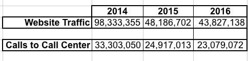 In short: In 2014, there were 12.3 website visits per enrollment; in 2015 this dropped down to just 4.1 visits per enrollment, and this year it was down further, to just 3.5 apiece. Something similar is happening with the call centers, although not nearly as dramatically: From 33.3 million calls for help in 2014, to 24.9 million, to just 23 million this year (4.2 apiece / 2.1 apiece / 1.8 apiece).