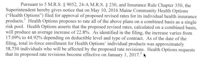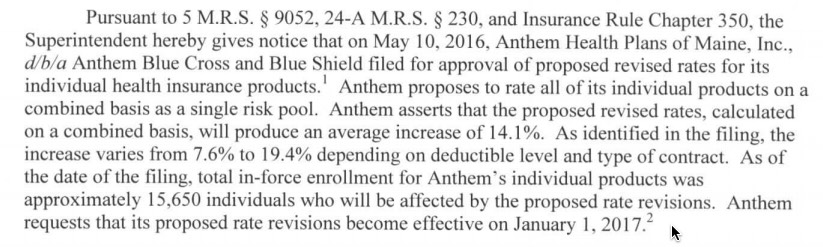 Just last week I ran the rate filing numbers for Maine and came up with an overall weighted 20.6% average hike request. Today I've learned three things: