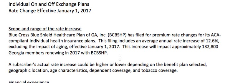 IMPORTANT: This is really just a placeholder for Georgia's 2017 average rate hike requests, because it's extremely spotty and partial so far. I'll update it once I'm able to actually track down the bulk of Georgia's individual market enrollment and rate hike request numbers.