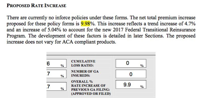 IMPORTANT: Please note that the Cigna filing appears to only be for off-exchange policies. Unless I'm missing something, it appears that Cigna is dropping off of the ACA exchange in 2017.