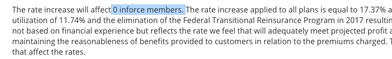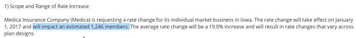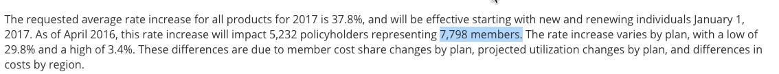 And finally, Wellmark's filing, which claims that their 38% rate hike will only impact around 7,800 current enrollees...as opposed to the 30,000 noted in the article: