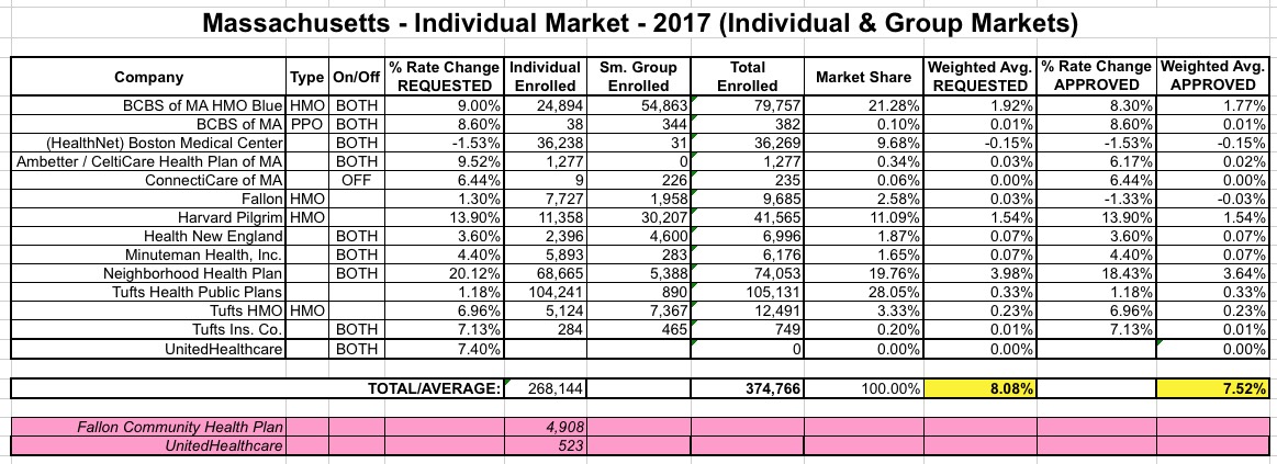 Still, for the record, here's the latest...in four states (Iowa, Indiana, Maine & Tennessee) I've just updated the requested and/or approved average increases. In the other four (Massachusetts, Montana, North & South Dakota) I've added the approved rate hikes as well.