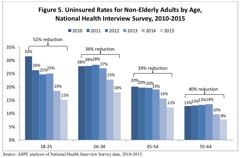 Well, today, the Assistant Secretary for Planning and Evaluation (ASPE) of the HHS Dept. has released an interesting brief which breaks out these numbers by a variety of different criteria, to see how different groups have fared under the ACA. Their conclusion?