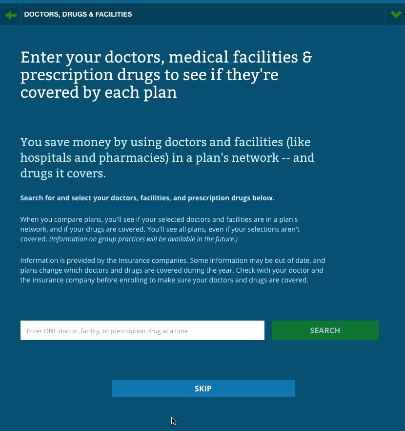 They'e also revamped the interface for the "In Network Tool" which checks to make sure that your preferred doctors, hospitals and drugs are included in the policy you choose or not: