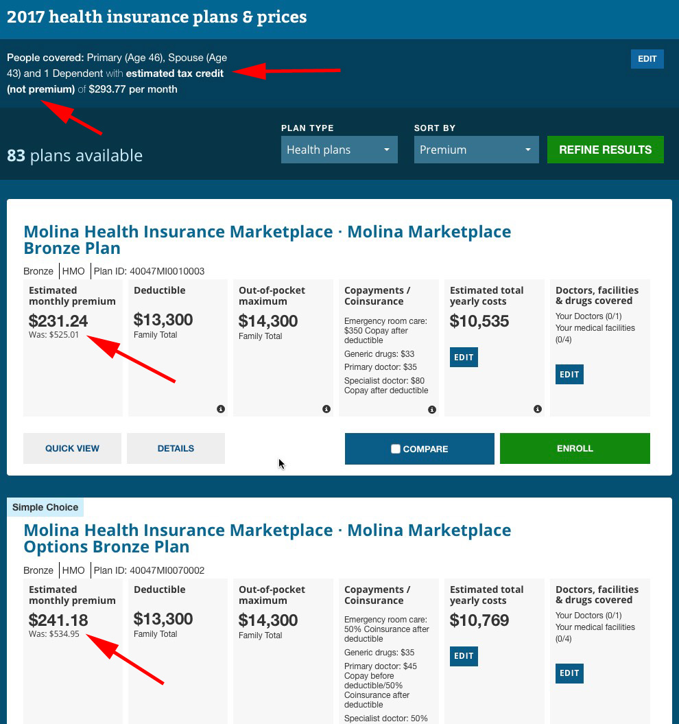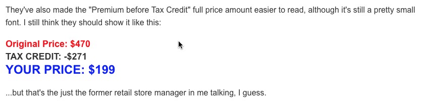 Finally, you're onto the actual plans themselves...and to HC.gov's credit, they've finally learned the importance of stressing the SUBSIDIZED price, NOT the UNSUBSIDIZED price, something which I've been pushing them to do for 2 years now: