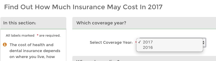 You can shop around, but there's no "2017" option...and the financial assistance form still asks for 2016 income.