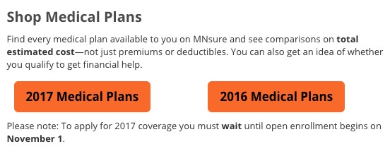 - MINNESOTA (MNsure): OPEN FOR WINDOW SHOPPING