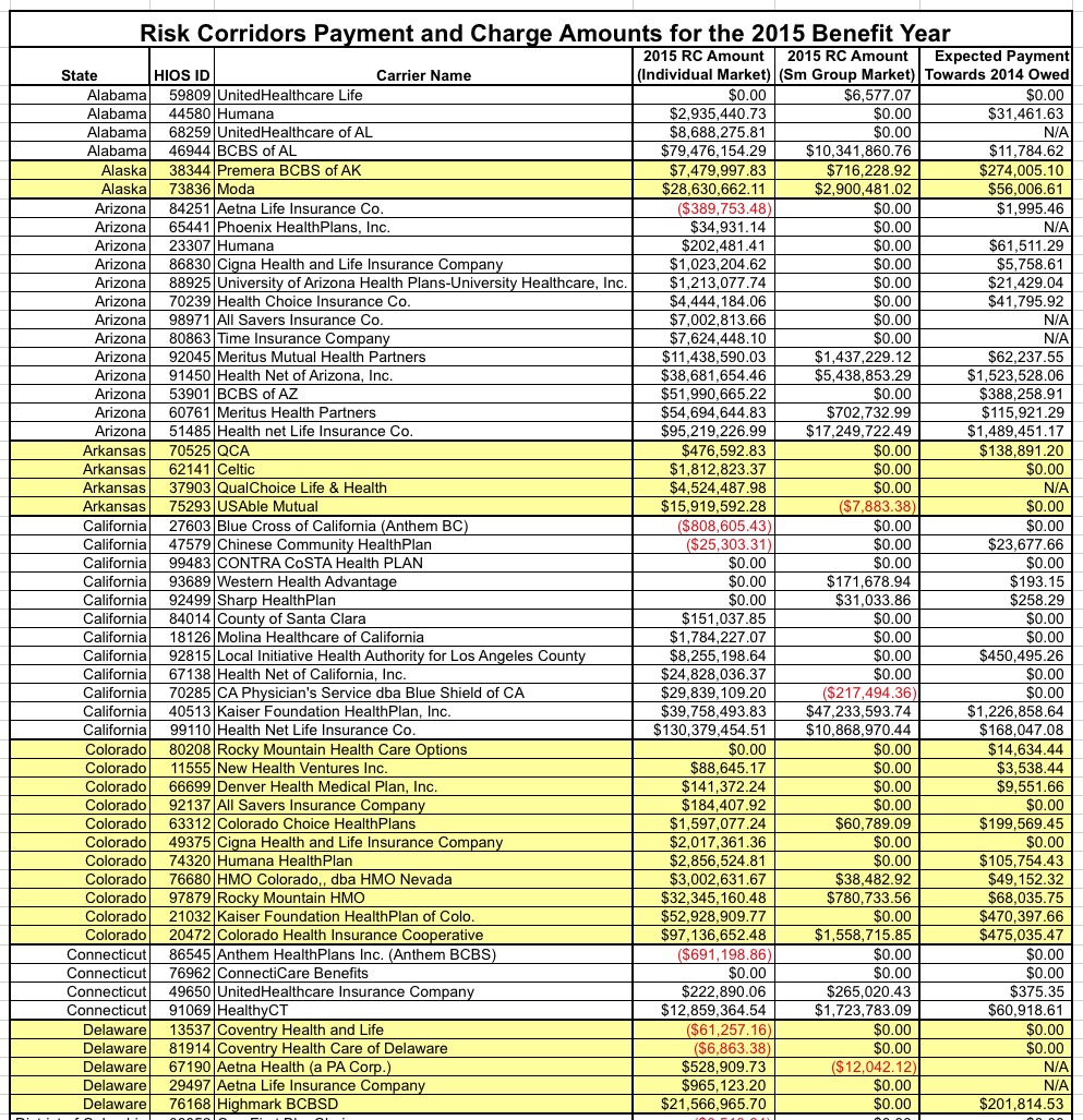 Risk Corridors for 2015 are out!!