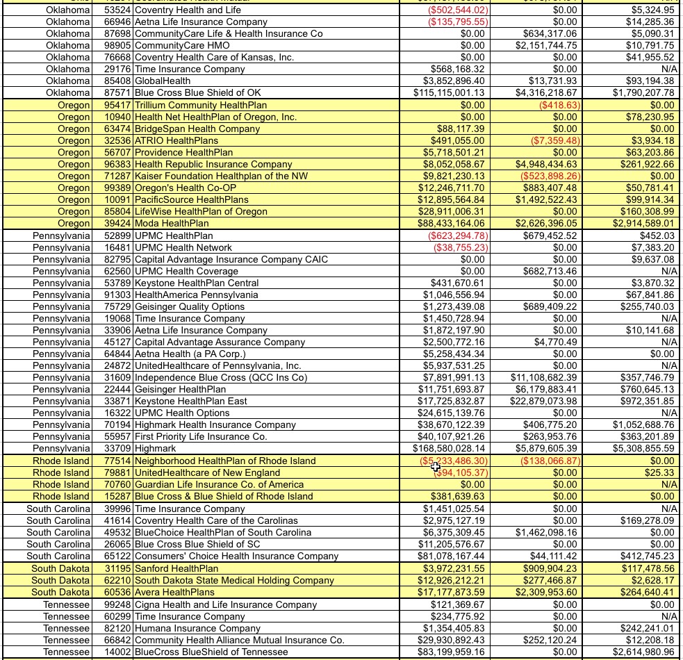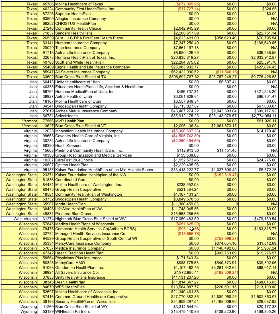 They also provided the dollar amounts for select major carriers, along with the national tally, which I've compiled into a table below: