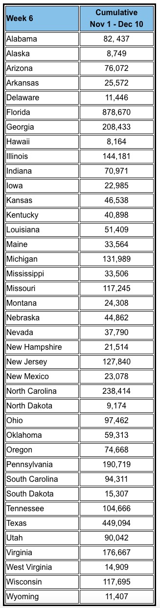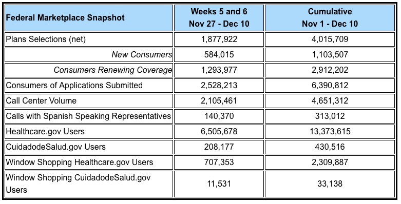 Week 5 & 6 Snapshot: 4.02M QHPs thru 12/10 (I was off by 0.4%)