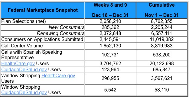 “With 8.8 million Americans signed up for coverage through HealthCare.gov, more than last year at this time, it is clear that Americans want and need this vital coverage,” said U.S. Department of Health and Human Services Secretary Sylvia M. Burwell. “As we enter the New Year, Americans who are still uninsured should sign up by January 15th to have coverage starting February 1.”