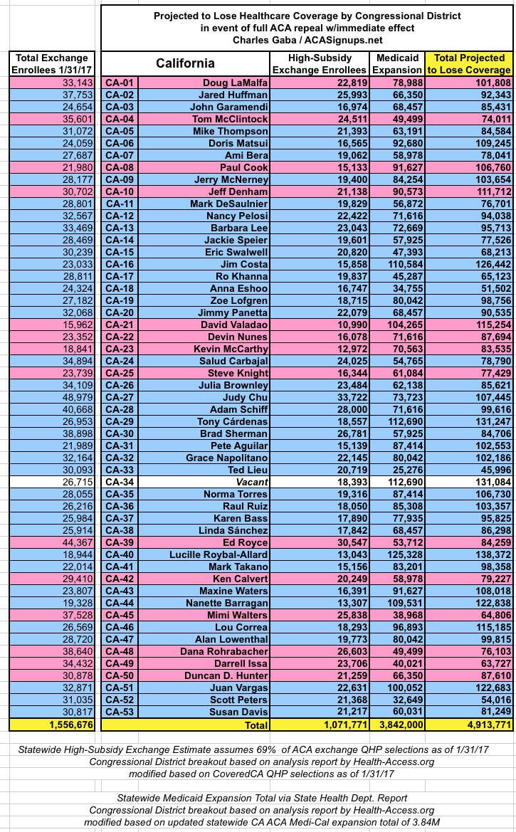 Unfortunately, due to the sheer amount of time it would take to do so, and the fact that the House is voting on the AHCA tomorrow (Thursday, 3/23), I don't have time to completely update/overhaul the Google Docs version of this data.