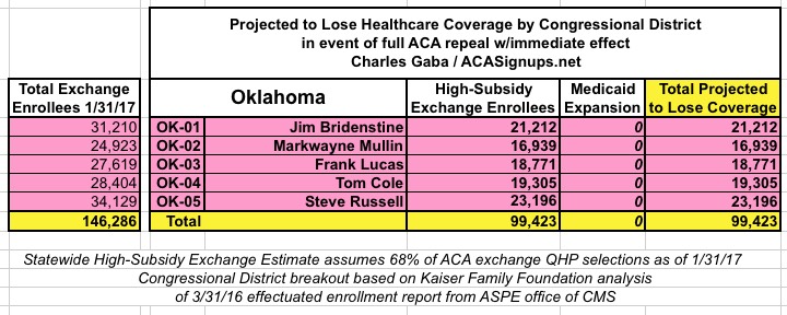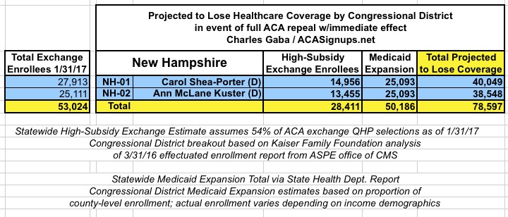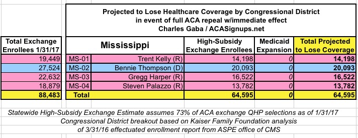 In addition, the KFF analysis doesn't include Medicaid expansion enrollees in those zip codes/Congressional Districts, so it's much easier to run estimates for the states which didn't expand Medicaid under the ACA (plus states with only a single district, duh!)