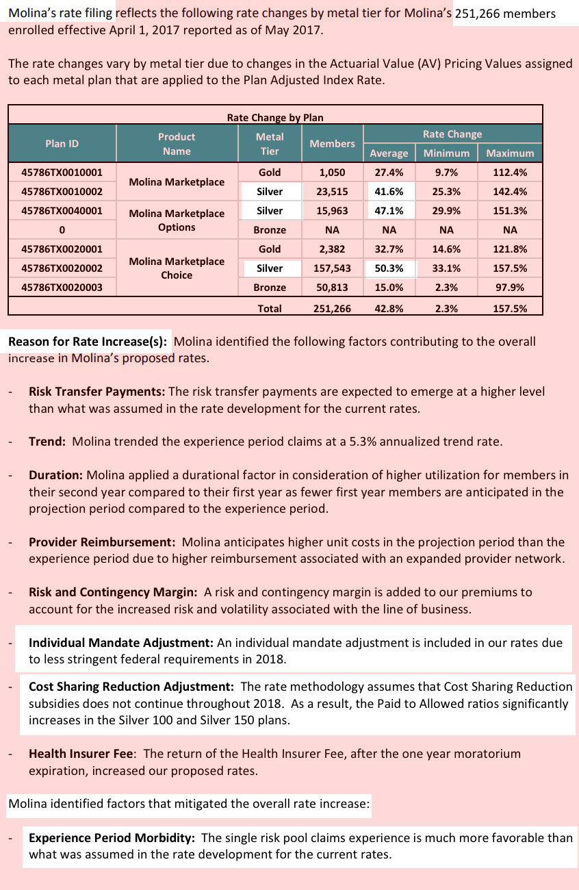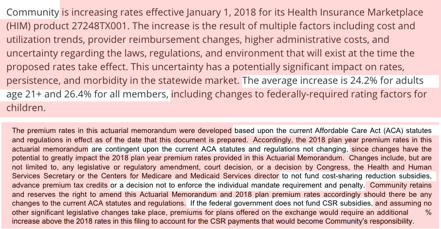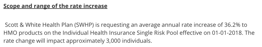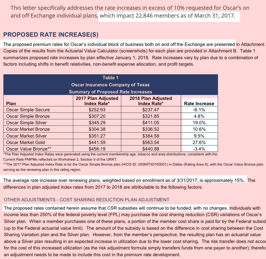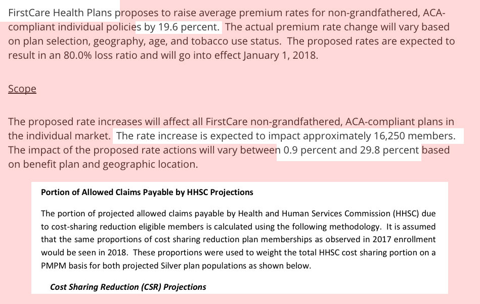 With those caveats in mind, it looks like the Lonestar State is seeking 20.2% average unsubsidized rate hikes if CSR payments are made, or 32.5% increases if they aren't: