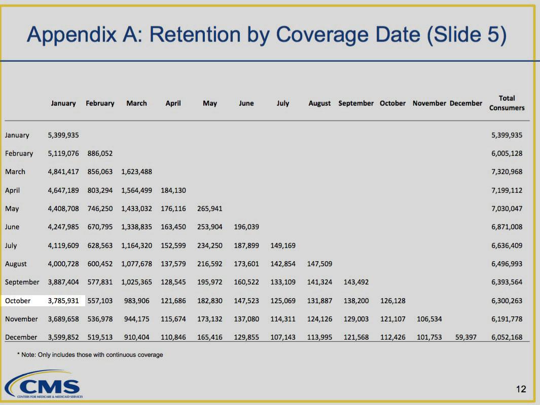 • In 2014, it was down to 6.70 million from 8.02 million (83.5% retention from May...remember, the first open enrollment period didn't end until mid-April anyway)