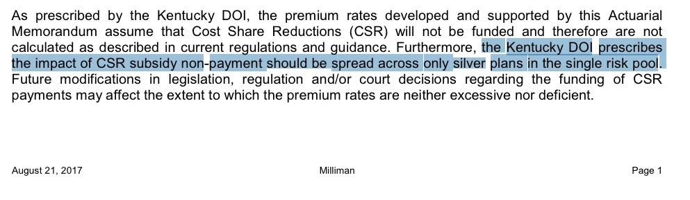 Kentucky: 44.9% approved rate hikes; 1/3 due specifically to CSR sabotage