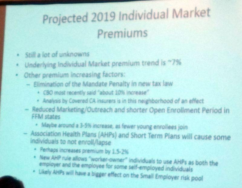 - Underlying Individual Market premium trend for 2019 is around 7% (that is, "normal" medical inflation, morbidity, etc.)