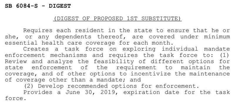 ...although it's really just a bill to set up a task force to explore the possibility of a mandate at the state level: