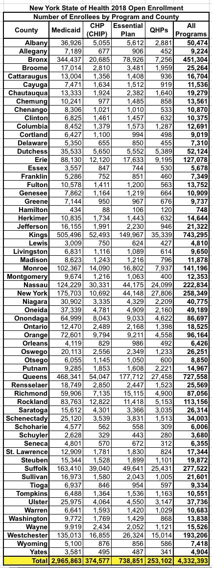Enrollment data for all counties and programs is available at https://info.nystateofhealth.ny.gov/2018countylevelenrollmentdata