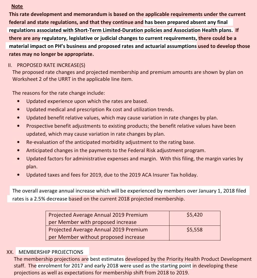 Overall, it appears that the 2018 sabotage factors are causing at least a 5% rate increase (for mandate repeal). A couple of carriers made references to #ShortAssPlans as well, and Priority Health (which is lowering rates slightly) went as far as to include a bold-faced warning at the top of their filing about the potential impact of #ShortAssPlans on 2019 premiums.