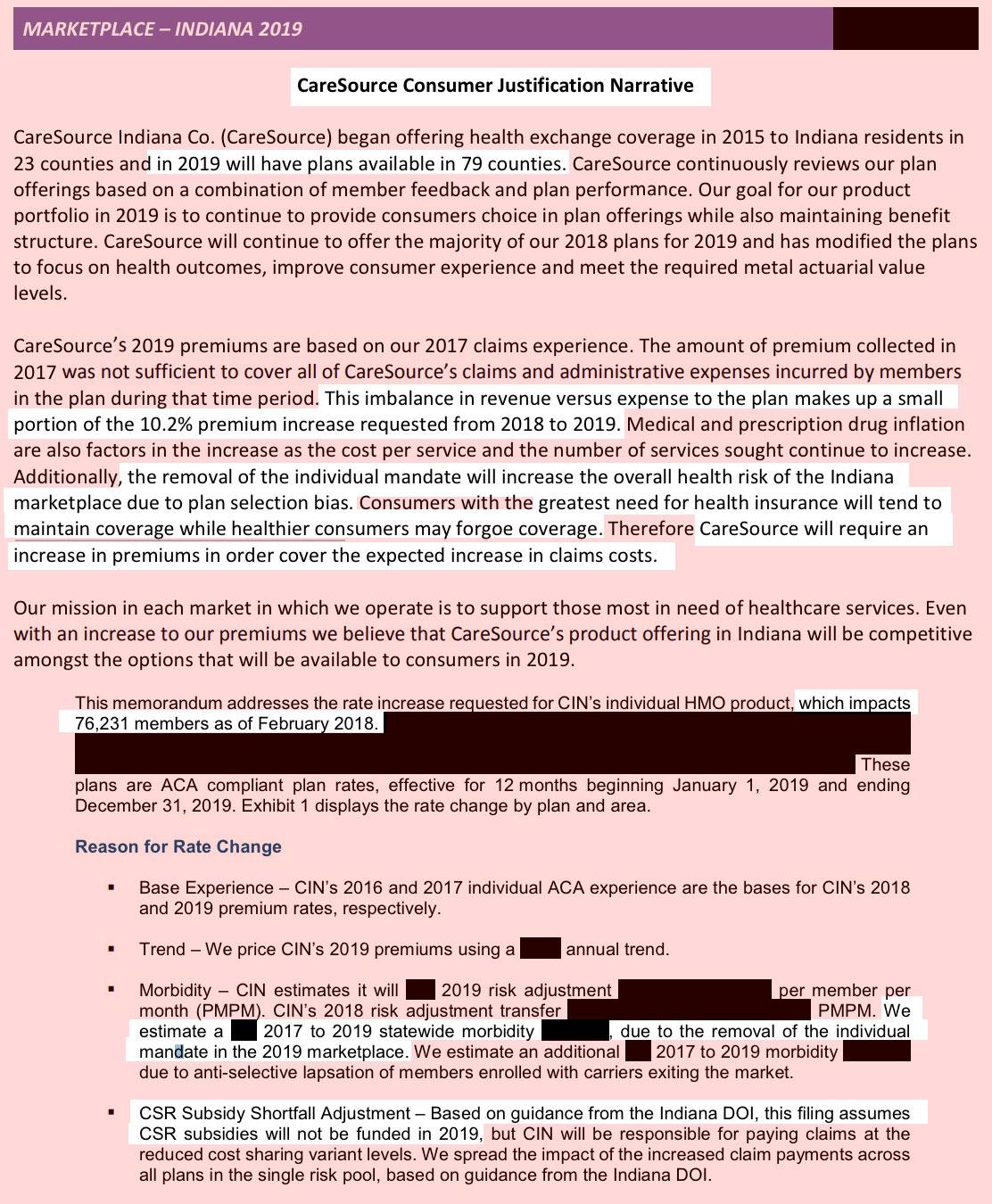 The filing makes several references to the impact of the Individual Mandate being repealed...but has unfortunately redacted the actual percentage impact.