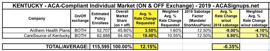 Assuming that's accurate, that means that if not for the mandate/shortassplan sabotage factors, Kentucky carriers would be keeping unsubsidized 2019 premiums flat year over year (or even dropping them a smidge).