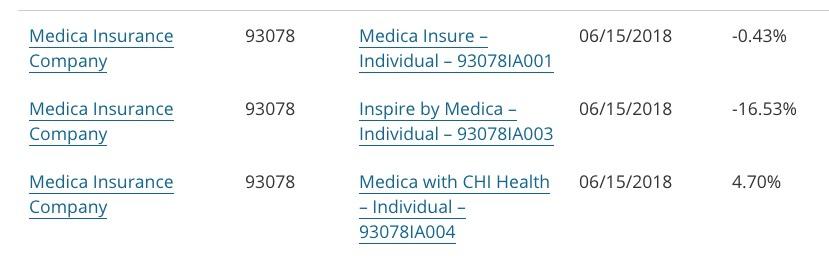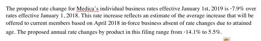 That leaves Medica. Here's what they had to say about their 2019 rates back in June: