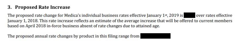BOOM, there it is: Medica actually requested a 7.9% average rate reduction for 2019!