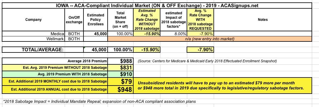 In any event, until I hear otherwise, I'm revising my Iowa number from a 3% increase to a 7.9% decrease...but that doesn't really change the estimated 8% impact due to the individual mandate being repealed and the expansion of short-term and association plans by the Trump Administration.