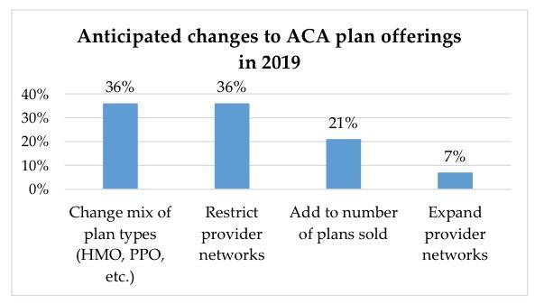 - More changes to plan design, provider networks anticipated for 2019: 36 percent of insurers surveyed said they planned to alter the mix of plan types (HMO, PPO, etc.) they offer next year. Another 36 percent say they will restrict the size of their provider networks.