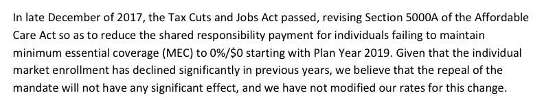 As a result, the approved statewide average rate change is a 12.4% reduction. While this is better than the prior 8% drop, it's important to note that this would have actually been an 18.9% drop if not for the individual mandate repeal & #ShortAssPlans sabotage factors.