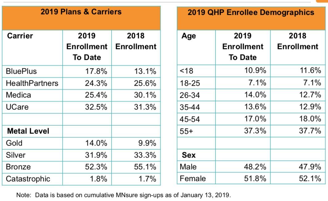 The Minnesota ACA exchange, MNsure, wrapped up their 2019 Open Enrollment Period on January 13th, and recently released three big reports chock full of wonky healthcare data nerd goodness. I'm mostly going to just repost some of the key graphs/charts, but make sure to read the full reports for all the details:
