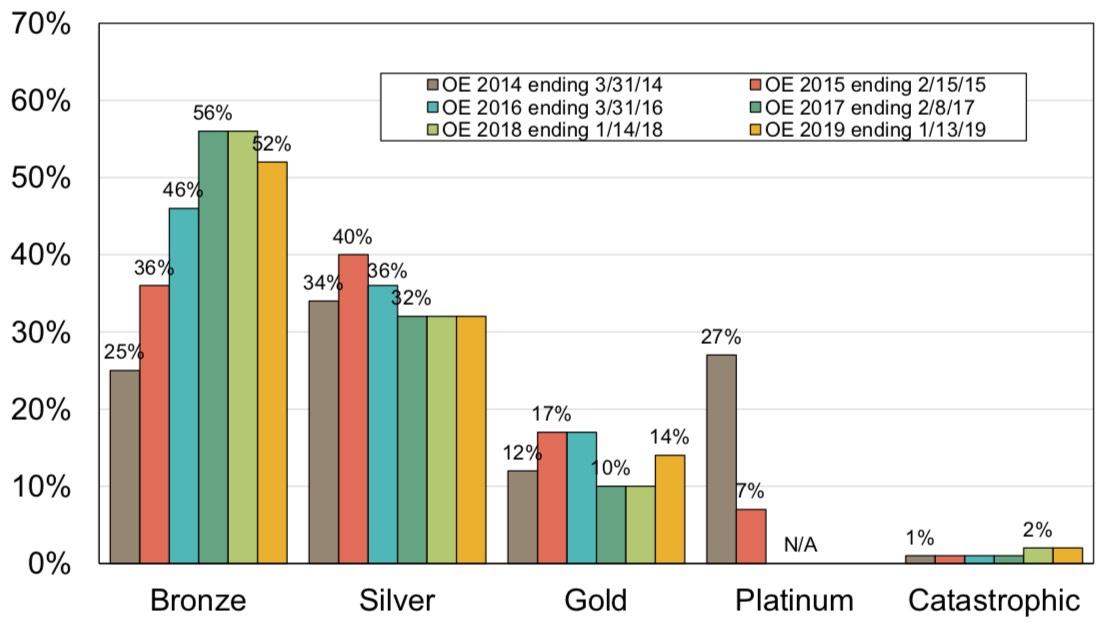 ...but it looks like the answer to the Platinum question might be found in this next table. "PreferredOne" held a full 59% of the exchange market in 2014...and then pulled out of the market altogether.