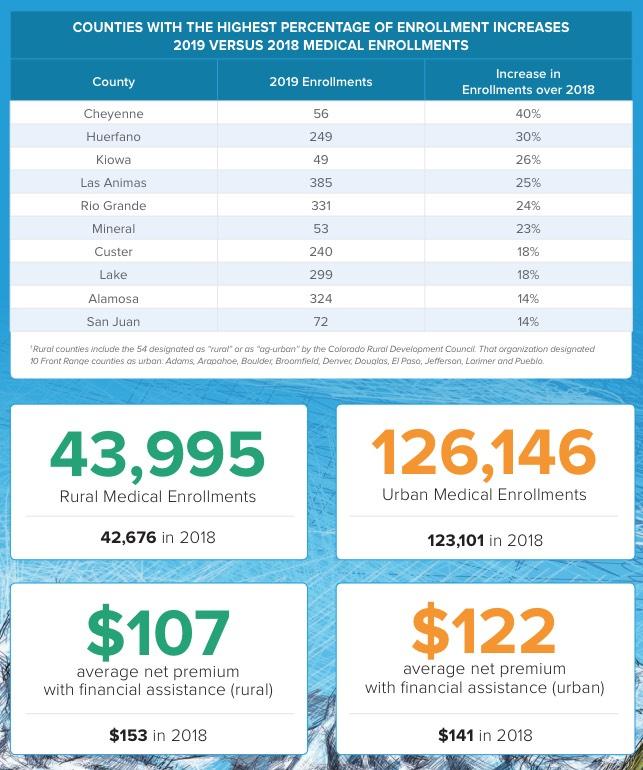 The data are from the 2019 Open Enrollment Report released today, which gives a detailed look at the two-and-a-half-month Open Enrollment period that ended on Jan. 15. More than 170,000 Coloradans signed up for health insurance through Connect for Health Colorado, the state’s health insurance Marketplace, during that period.