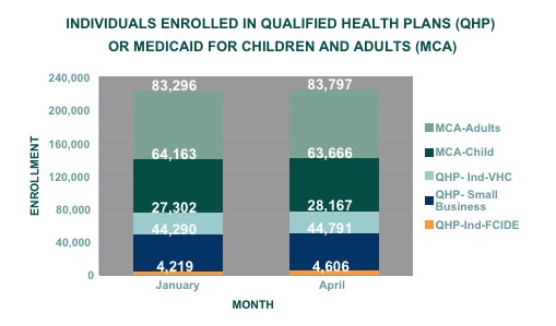 And yes, I realize that some of this is practically unreadable; that's exactly how it appears on the report. The key point is that Vermont had 27,302 effectuated exchange QHP enrollees in January, which increased slightly to 28,167 as of April (which makes sense, since open enrollment was still going on through the end of January).