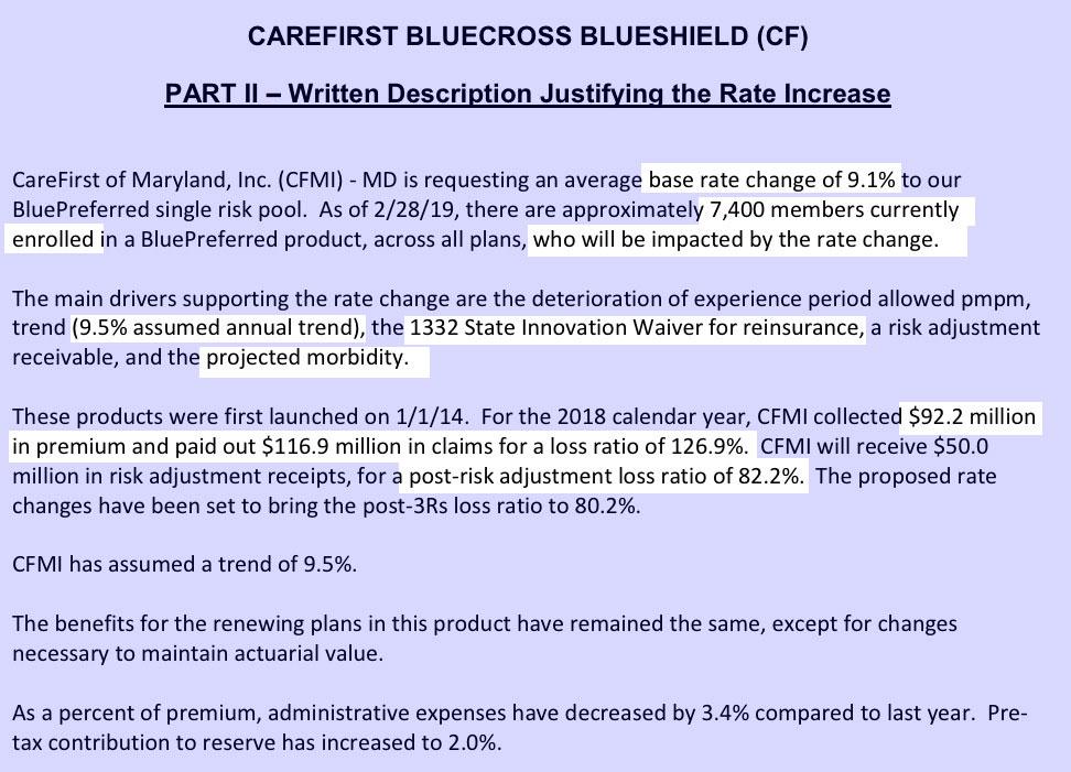 Well, it's now May 2019, and after Virginia being the first state out of the gate with their preliminary rate filings for the following year, I'm surprised to see Maryland has beaten them to the punch for 2020: