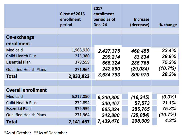 ALBANY, N.Y. (February 1, 2017) -- NY State of Health, the state’s official health plan Marketplace, today announced that more than 3.6 million New Yorkers enrolled in comprehensive health coverage through NY State of Health, a 28 percent increase from 2016.