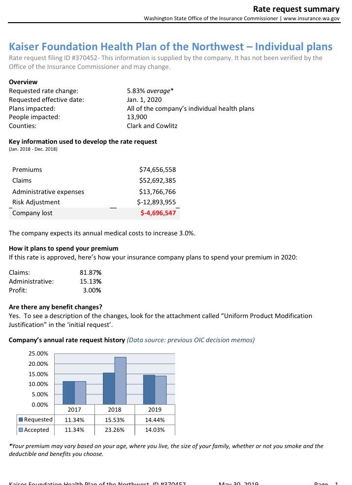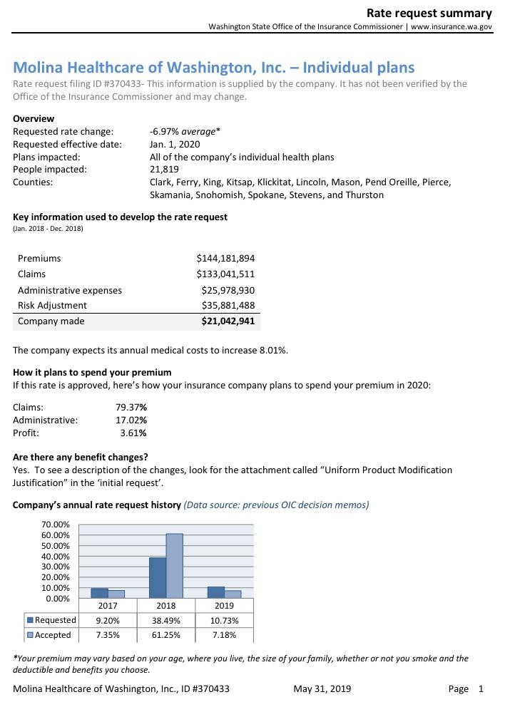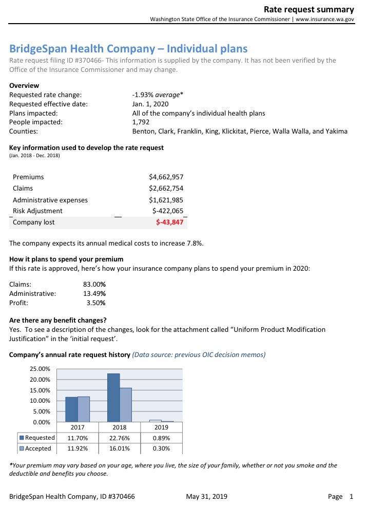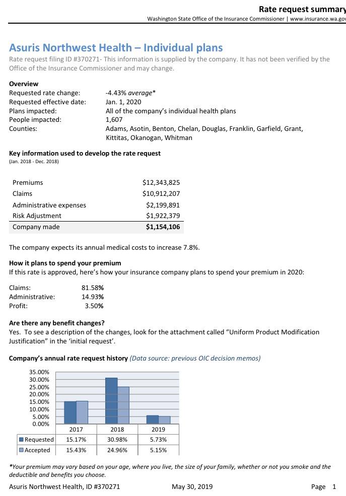 In any event, the nominal ~1% average rate increase (it ranges from a 7.3% reduction to a 10.2% increase by carrier) means unsubsidized Washingtonians will only be paying around $8/month more on average next year.