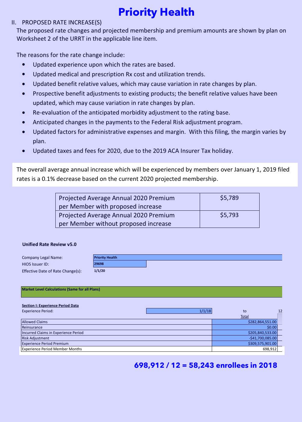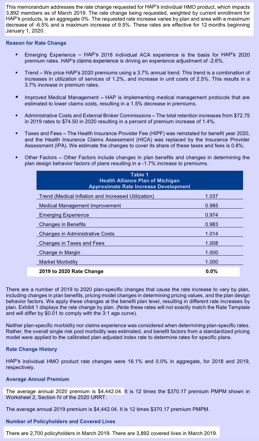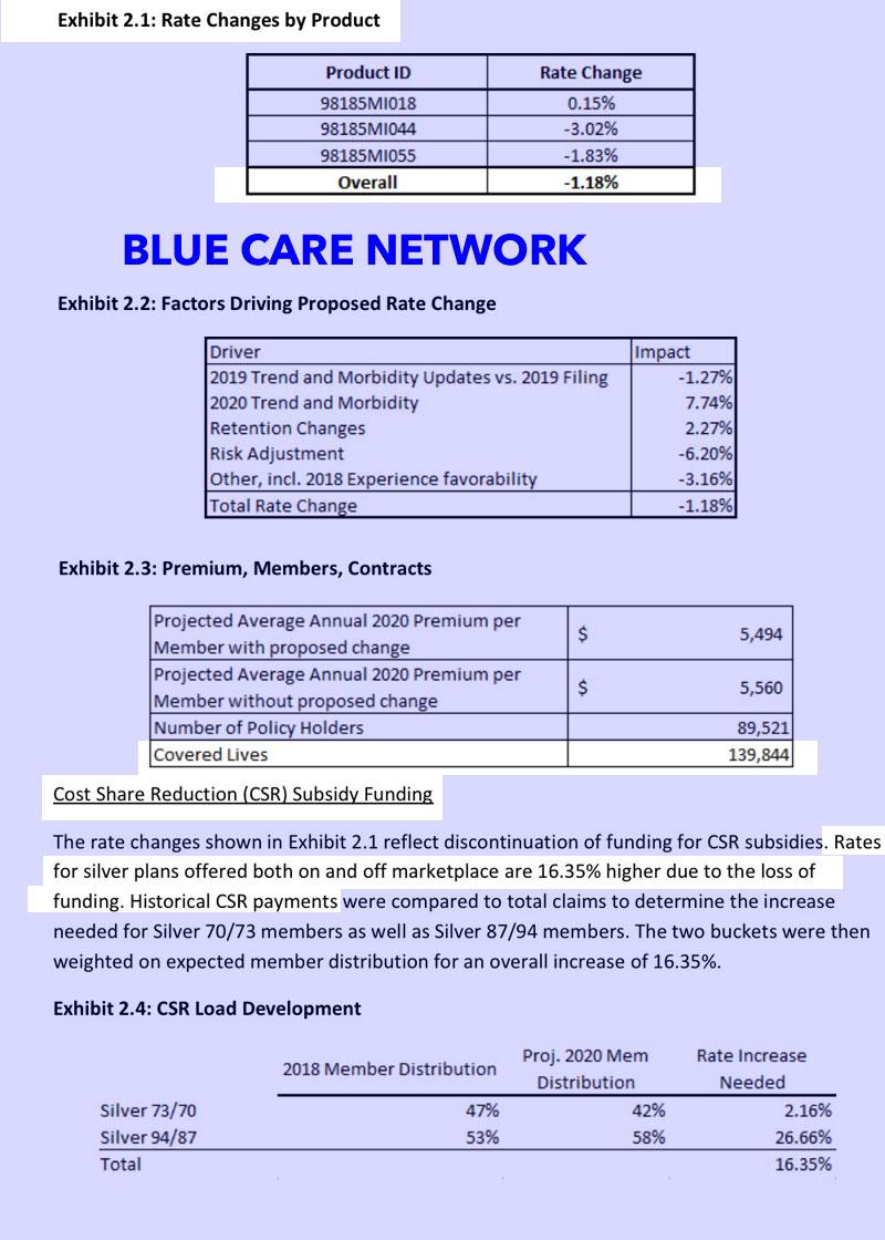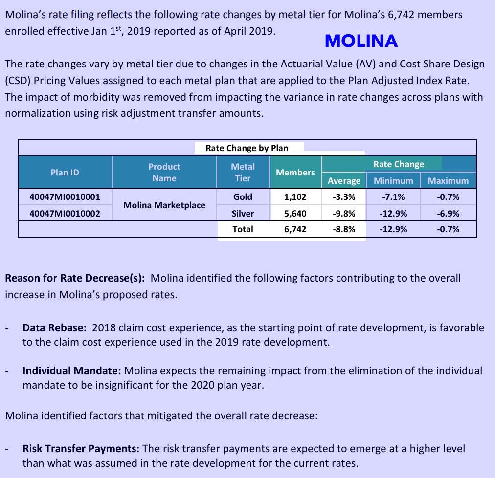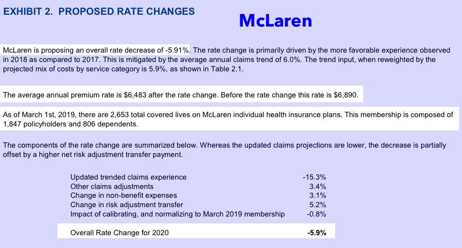 Michigan: PRELIMINARY 2020 ACA Exchange Premium Rate Changes: 2.0% *decrease*