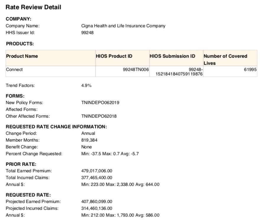 - Cigna: Coverage continues in Knoxville, Nashville, Memphis and the Tri-Cities area and expands into Chattanooga, Jackson and surrounding counties; premiums decrease 5.7%.